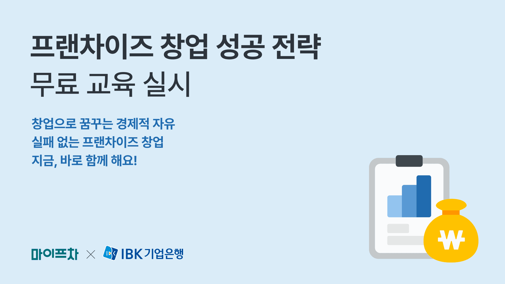 프랜차이즈 창업 플랫폼 마이프차가 오는 7월 22일 수원상공회의소에서 예비 창업자를 위해 ‘검색해도 나오지 않는 프랜차이즈 창업 성공전략’ 무료 교육 프로그램을 실시한다고 밝혔다.