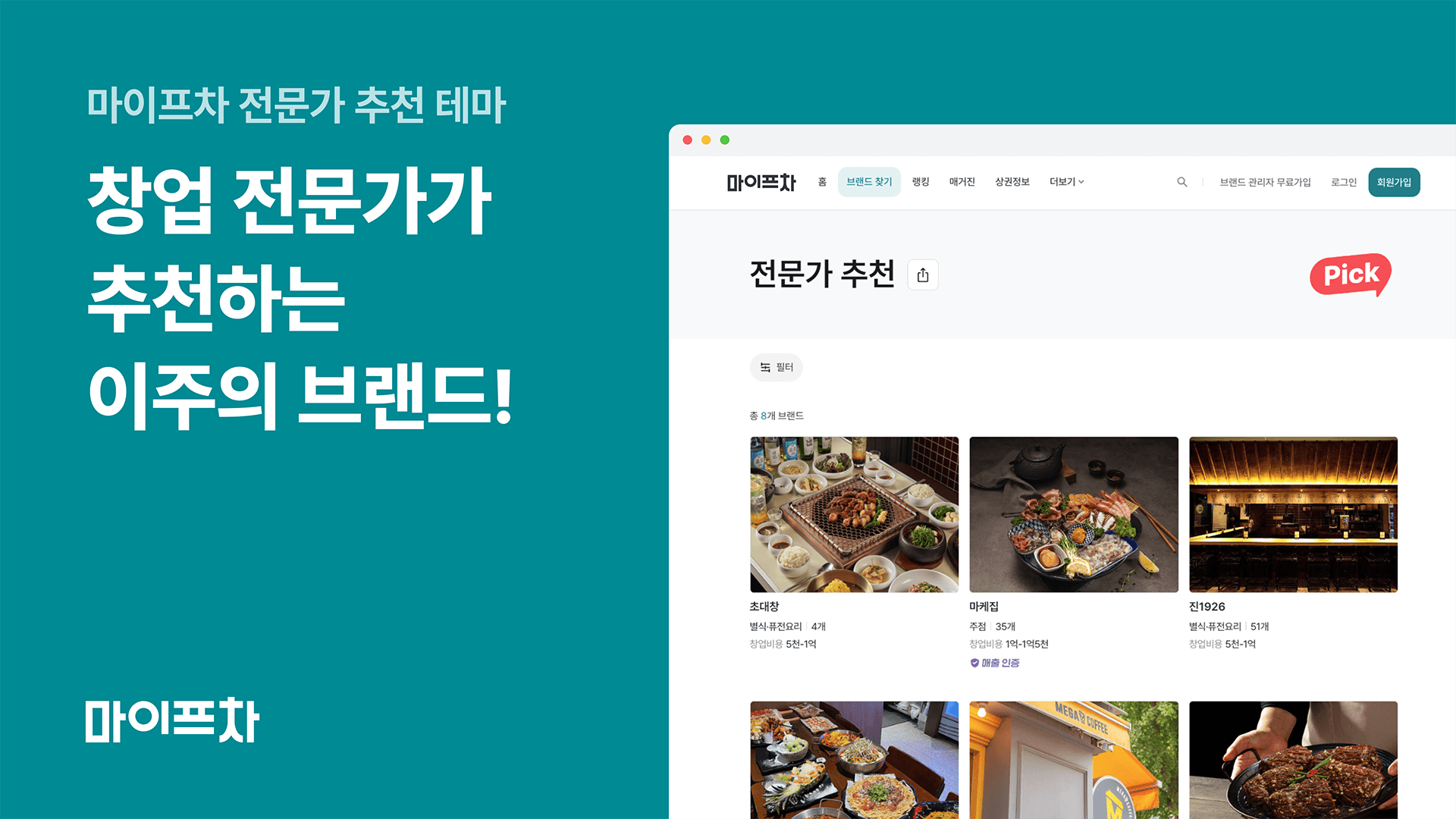 마이프차, 프랜차이즈 브랜드 정보 테마별 큐레이션 진행